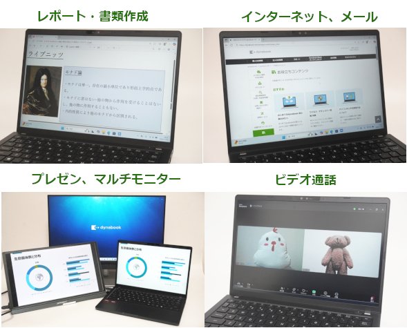大学の講義レポートや書類を作成したり、インターネットやメールの送受信などはもちろんのこと、就職活動でビデオ通話ソフトを使ったWEB面接などにも問題なく使うことができます。