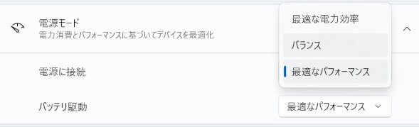 通常は標準モードで問題なく使えるでしょう。もし、動作音を抑えたい場合には、最適な電力効率モードに設定すると良いでしょう。
