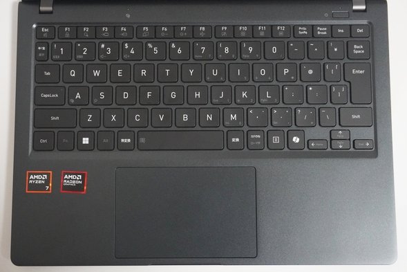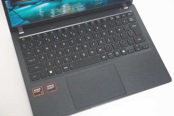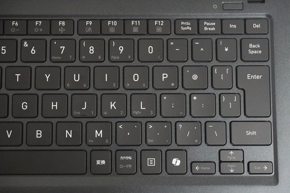 一般的なキーボードではキーに日本語のカナが刻印されているのですが、dynabook RA/ZYでは日本語のカナはありません。そのためとてもスタイリッシュな印象を受けるキーボードになっています。