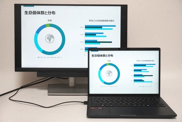 HDMIポートが搭載されているので、モニターやプロジェクターにつないでプレゼンを行うのも問題ありません。