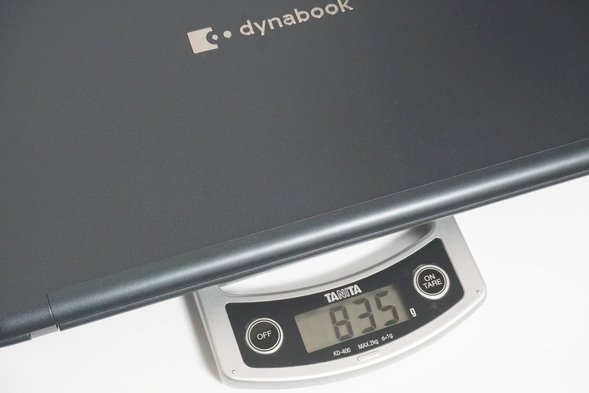 dynabook RA/ZYは重さがたったの853gという超軽量なノートパソコンです。初めて手で持った時にふわっと持ち上げることができ、とても軽くてびっくりしました。