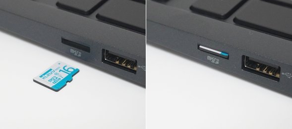もし、パソコン内部のストレージが足りなくなってきたら、microSDカードを使って保存容量を確保するという使い方もできます。