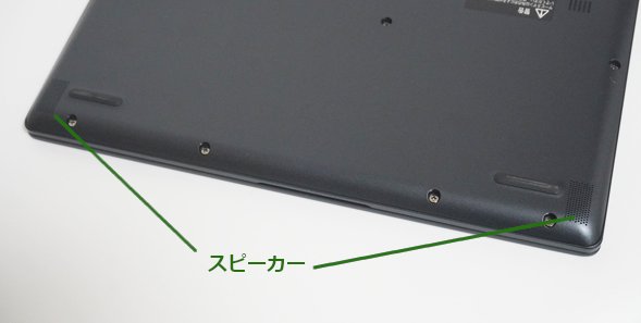 スピーカーは本体底面に搭載されています。音質は普通かなと思いました。