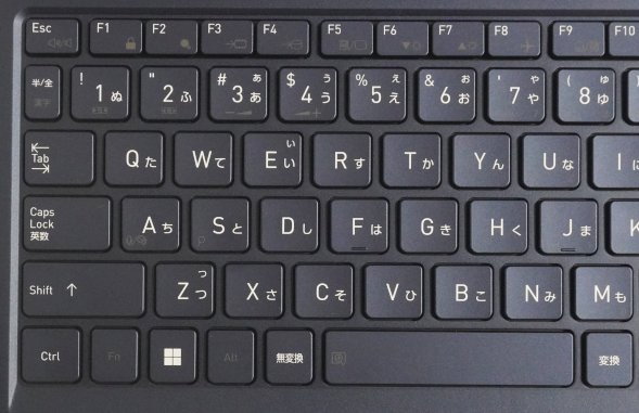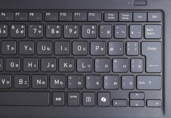 キーボードは下の写真のようになっていてスタンダードな仕様です。実際に試してみたところ、特に問題なく使うことができました。ブラインドタッチでの入力も特に困ることはありませんでした。