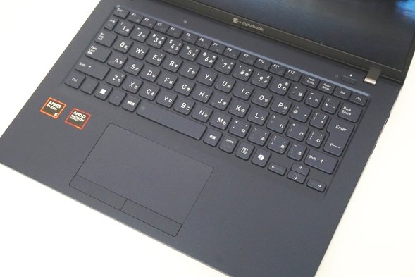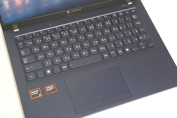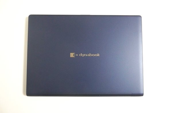 ダークテックブルーというカラーが採用されています。天板にはdynabookのロゴが刻印されています。