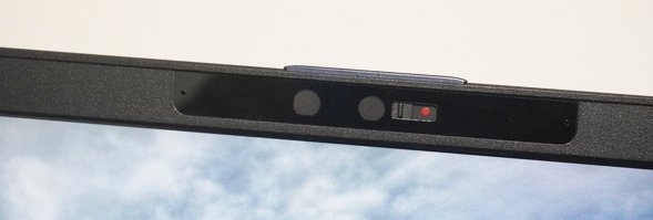 カメラにはプライバシーシャッターが搭載されています。カメラを使わないときは、すぐ上側のレバーを手で動かしてレンズにカバーをかけておくと良いです。