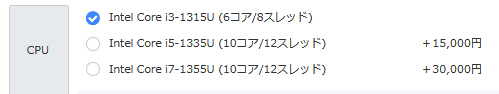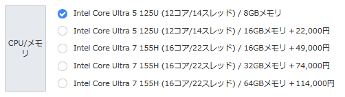 また、上述したように、CPUとメモリの組み合わせが決まっている製品もありますのでご注意ください。
