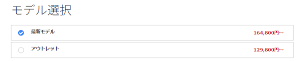 同じシリーズで「最新モデル」や「アウトレット」などの選択肢が表示されます。