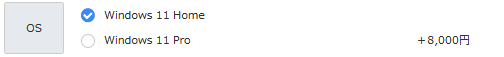 Windows 11 Homeしか選べないモデル、またはWindows 11 HomeもしくはWindows 11 Proのどちらかを選べるモデルがあります。