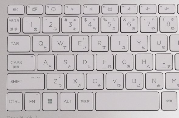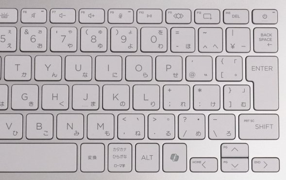 キーボードはスタンダードな日本語配列のキーボードです。14インチのサイズなので、テンキーは搭載されていません。