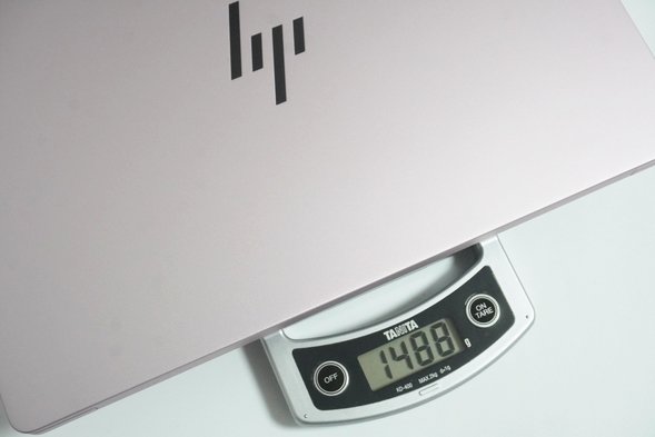 重さを実際に計測してみたところ約1.49kgでした。14インチのノートパソコンとしては定番の重さです。
