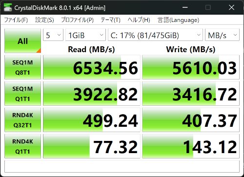 以下はCPUやストレージなどの性能を専用のソフトで計測したベンチマークの結果になります。専門的な内容になりますので、読み飛ばしてもらって構いません。