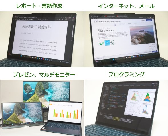 Yoga Slim 7 Gen 10 (14型 AMD)の使用例。これ以外にも幅広い用途に使用できる。