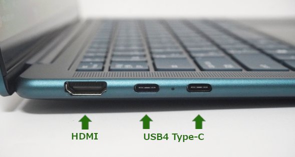 左側面です。HDMIポート、USB4 Type-C(電源コネクタ兼用)があります。