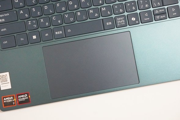 タッチパッドです。クリックやスクロール、スマホを使っているときのように指を押し広げたり縮めたりといった操作(ピンチイン、ピンチアウト)などの二本指での操作も問題なく行うことができます。