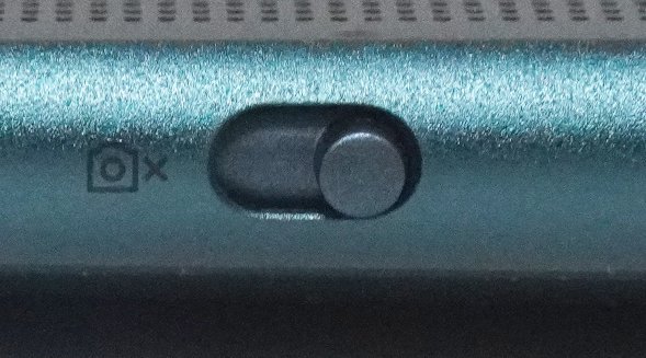 まず、カメラの撮影ができる場合、本体側面のプライバシーシャッターレバーは下の写真のような状態になります。