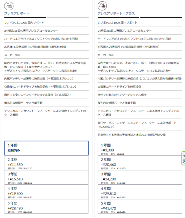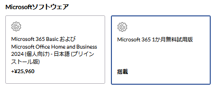 CPUやメモリ、ストレージ容量があらかじめ決まっていて、その中から選択して購入することになります。構成内容は固定されていますが、延長保証内容や期間などのサポートは選ぶことができます。