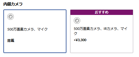 IRカメラが搭載されていると顔認証が利用できるようになります。もし、顔認証を使いたい場合は、IRカメラを選択するようにしてください。