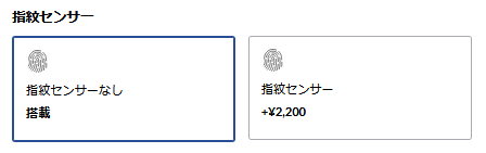 指紋センサーの有無も選択できます。指紋認証を行いたい場合は指紋センサーを搭載するようにしてください。