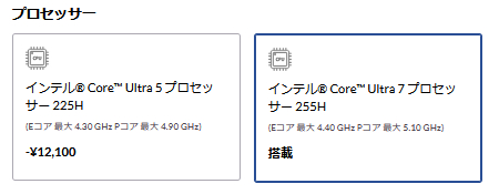 CPUがカスタマイズできる場合、下のような形でCPUを選択することができるようになります。