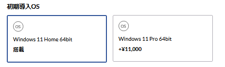 OSをカスタマイズできるモデルの場合は、下のように選べるようになります。
