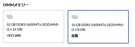 選択できるメモリはモデルによって違いますが、8GB ~ 64GBまで選べるようになっています。