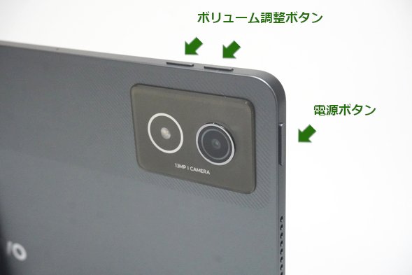 スマホと同じように、ボリューム調整ボタンと電源ボタンが搭載されています。