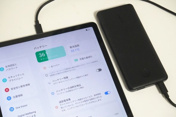 実際に試してみたところ、20W以上の出力が可能なモバイルバッテリーであればタブレットの充電を行うことができました。