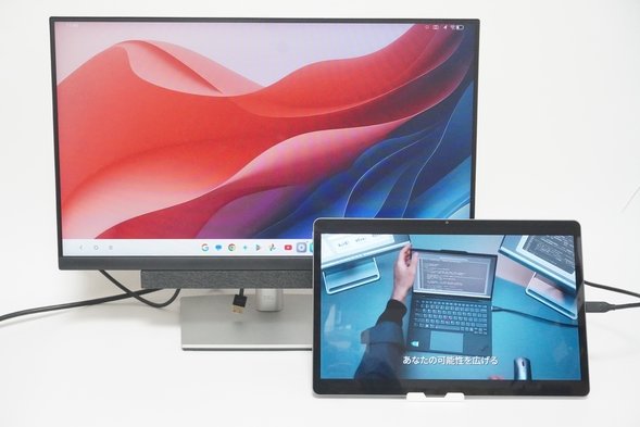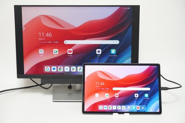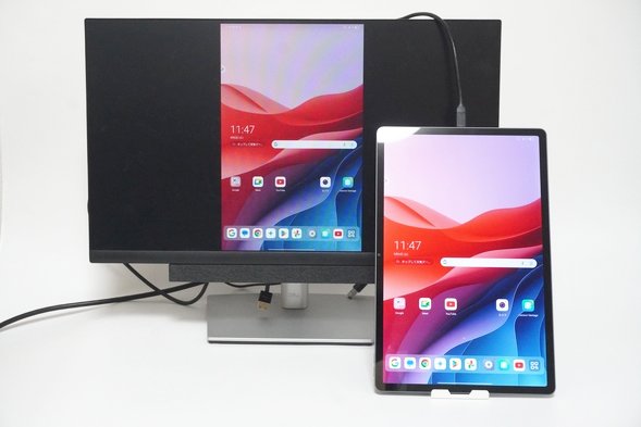 Idea Tab Proに搭載されているUSB Type-Cポートとモニターとをケーブルで接続すると、モニターにタブレットの画面を映すことができます。