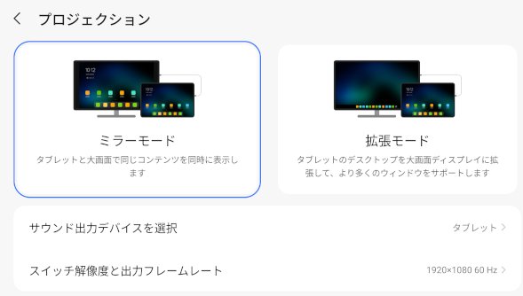 ミラーモードと拡張モードが用意されていて、タブレットの画面をそのまま映すことも、タブレットの画面を拡張してそれぞれ別の画面を映すことも可能です。