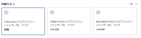 また、カメラの解像度は720pまたは1080pとなっています。IR & 1080p FHDカメラにすると、顔認証もできるようになります。顔認証が必要な場合は、このカメラを選択してみてください。