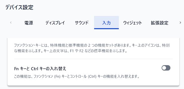 ただ、設定によってFnキーとCtrlキーを入れ替えることができますので、もし使いにくいなと感じたら設定で変更すればよいでしょう。