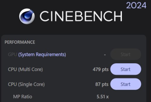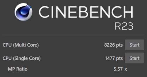 CPUの性能をCINEBENCH R23と2024という2つのソフトを用いて測定しました。スコアはそれぞれ8226 pts、479ptsとなりました。高いスコアとなっていて、とても良い性能です。快適に使うことができるでしょう。