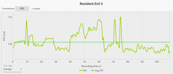 両モードともに平均フレームレートは画面のリフレッシュレートよりも高くなっているので、性能をフルに引き出してプレイすることができています。とても良い環境だと思います。
