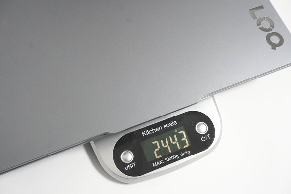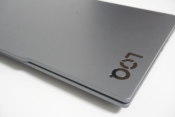 本体カラーにはルナグレーという色が採用されています。落ち着いた雰囲気の色です。天板には製品名であるLOQと、メーカー名のLenovoのロゴが対角線上に配置されています。