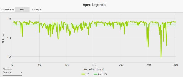 APEXレジェンズをプレイした時の5分間のフレームレートの推移。