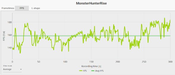 両モードでの平均フレームレートはそれぞれ244.8fpsと182.4fpsとなり、ディスプレイのリフレッシュレートである144fpsを余裕で超えていました。