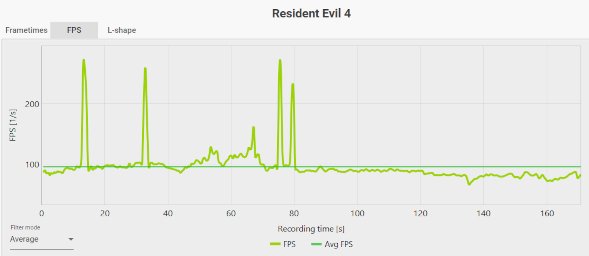 バイオハザードRe:4をプレイした時の約3分間のフレームレートの推移。