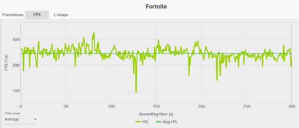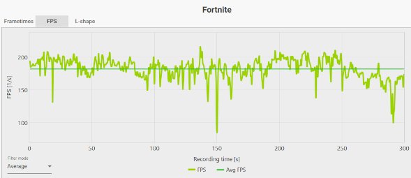 フォートナイトをプレイした時の5分間のフレームレートの推移。