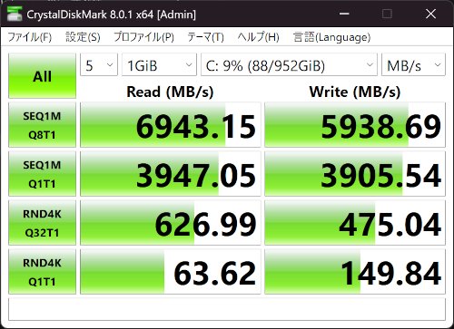 ストレージのアクセス速度を測定しました。非常に高速な読み書きが可能です。問題なく使うことができます。