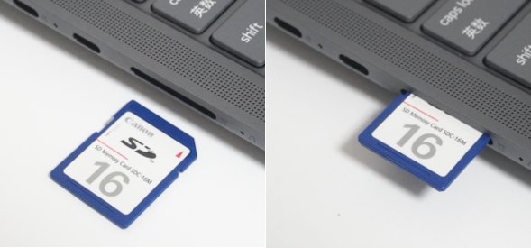 SDカードスロットはフルサイズのものに対応しています。最近はフルサイズSDカードに対応したノートPCが減ってきているのでうれしいですね。