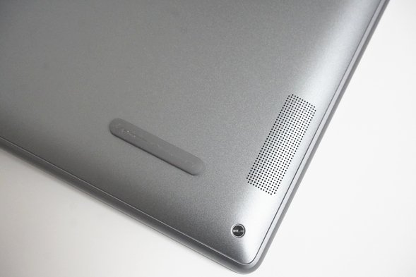 本体はスリムです。天板にはメーカーであるLenovoのロゴが刻印されているだけで、とてもシンプルになっています。