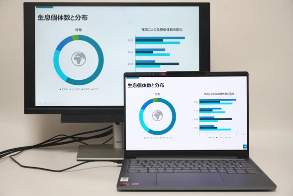 PCとモニターで別々の画面を表示することもできます。それぞれの画面で違う作業を行うことができます。