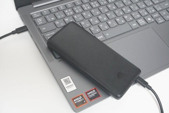 また、USB Type-CポートにPower Delivery対応のモバイルバッテリーや充電器を接続することで、PCの充電が可能です。