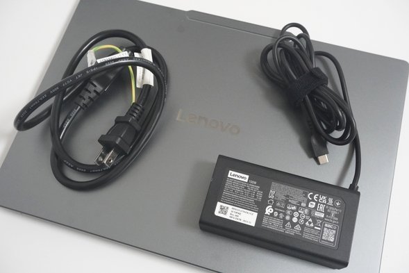ACアダプターです。Ideapad Pro 5 Gen 10 14型AMDは一般向けの製品ですが、ややACアダプターは大きめです。ACアダプターは100Wの出力になっています。