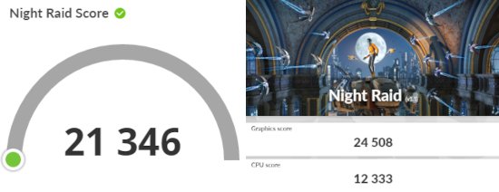 グラフィックスの性能を計測しました。CPU内蔵のグラフィックスですが、とても高いスコアが得られました。NVIDIA GeForce MX550と同等以上の高い性能です。