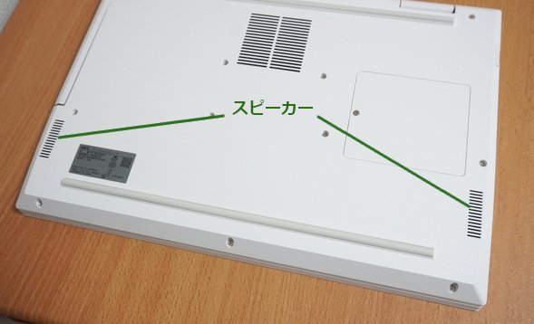 スピーカーは本体底面にあります。音質は普通で、特に問題なく効くことができると思います。