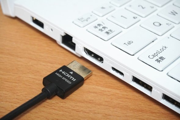 HDMIポートが搭載されているので、モニターやプロジェクターとつないでPCの画面を映し出してプレゼンを行ったり、PCとモニターで別の画面を表示してマルチモニター環境で作業することも問題なく行うことができます。