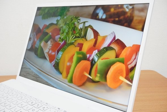 実際にテキストや画像、動画などを見てみても、自然な色合いで綺麗に表示できていました。文字がゆがんだりにじんだりということもありませんでした。光沢ありのディスプレイなので映り込みはありますが、鮮やかに表示される見やすいディスプレイです。