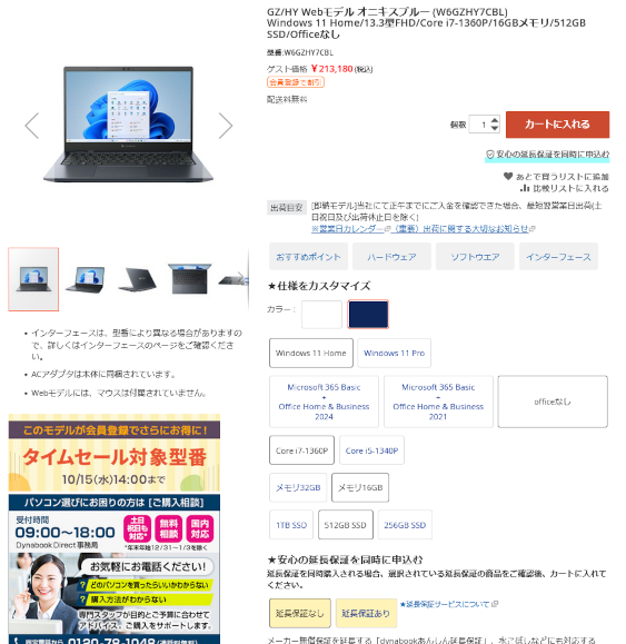 直販サイトDynabookダイレクトでノートパソコンをカスタマイズして購入する方法